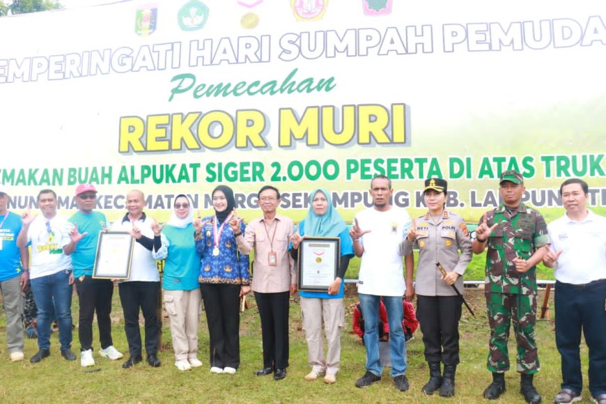 LAMPUNGKU.ID, LAMPUNG TIMUR Suasana meriah dan semangat kebersamaan mewarnai Desa Gunung Mas, Lampung Timur, hari ini. Ribuan warga tumpah ruah dalam acara pemecahan rekor Museum Rekor-Dunia Indonesia (MURI) untuk kategori "Makan Buah Alpukat Siger oleh 2.000 orang di atas kendaraan truk."