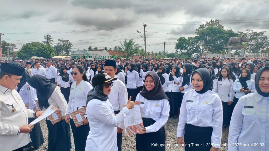 Hal itu ditegaskan Bupati Lampung Timur Ela Siti Nuryamah saat melantik 4.116 pegawai yang menerima SK PPPK Paruh Waktu formasi 2025 di halaman kantor Bupati setempat, Rabu (31/12/2025).