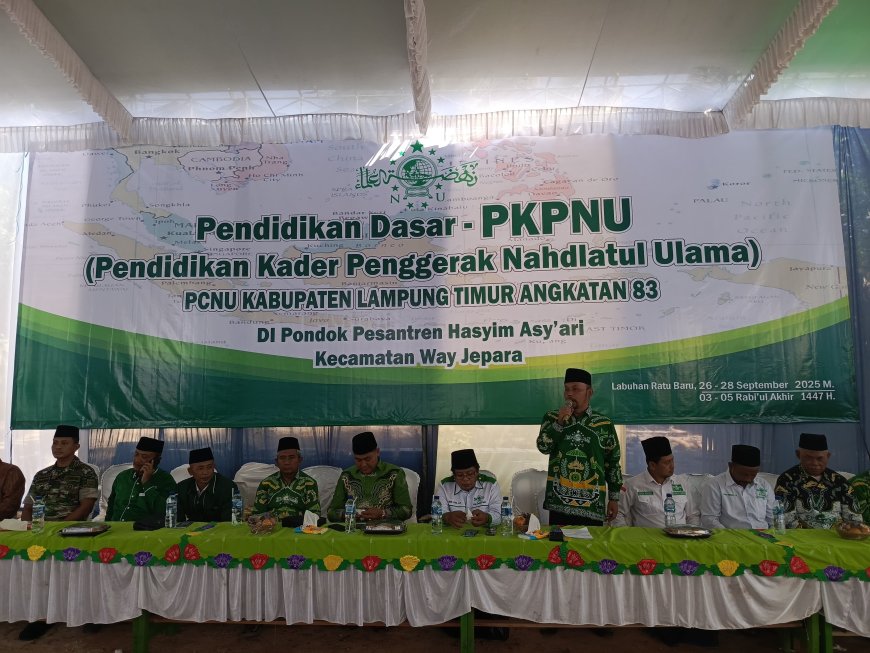 LAMPUNGKU.ID, LAMPUNG TIMUR Pengurus Cabang Nahdlatul Ulama (PCNU) Lampung Timur melalui Lakpesdam menggelar Pelatihan Pengembangan Kader Penggerak Nahdlatul Ulama (PDPKPNU) angkatan ke-83 zona 3. Bertempat di Pondok Pesantren KH Hasyim Asy'ari, Desa Labuhan Ratu Baru, Kecamatan Way Jepara, acara yang berlangsung pada Jumat (26/9/2025) ini menjadi ajang penggemblengan kader NU yang militan dan berdedikasi tinggi.