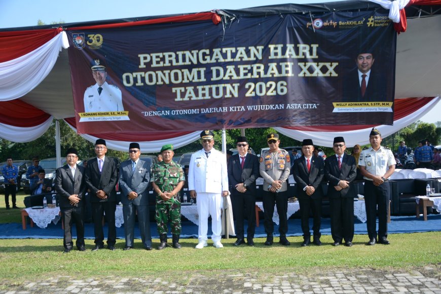 LAMPUNGKU.ID, LAMPUNG TENGAH Pelaksana Tugas (Plt) Bupati Lampung Tengah I Komang Koheri menegaskan pentingnya partisipasi aktif semua pihak dalam memperkuat tata kelola pemerintahan daerah. Hal itu ia sampaikan saat bertindak sebagai pembina upacara pada Upacara Peringatan Hari Otonomi Daerah (OTDA) ke-30 Tahun 2026 di Lapangan Merdeka Gunung Sugih, Senin (27/04/2026).