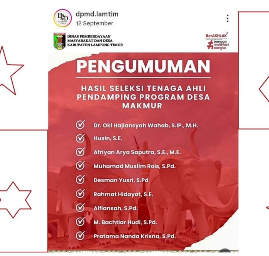 Terpisah Plt Kepala Dinas PMD Lampung Timur, M. Ridwan, menjelaskan bahwa proses rekrutmen telah dilakukan secara terbuka melalui Surat Keputusan (SK), pengumuman di papan pengumuman hingga media sosial.